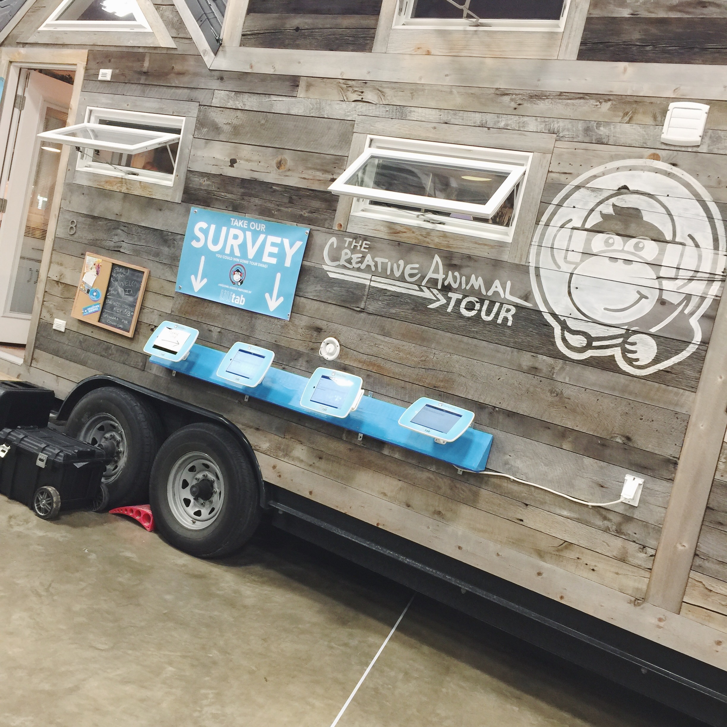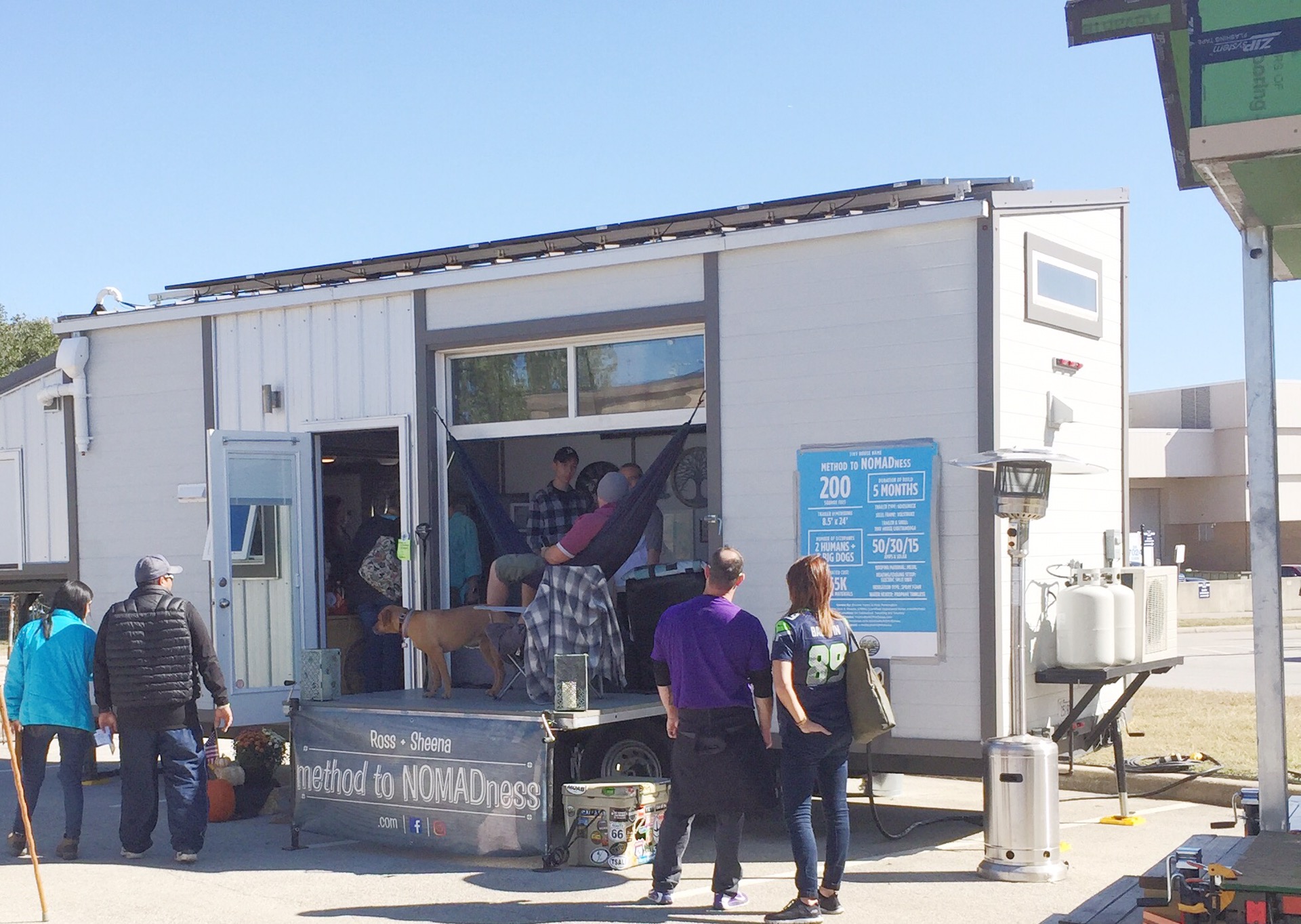 Our first tour was of The Creative Animal Tour Tiny House, which was awesome! You may recognize them from HGTV’s Tiny House Big Living. We chatted with Steph a bit (who did the blueprints for the house) and she showed us some super cool features, like trap door storage in the “ceiling” under their loft bed.