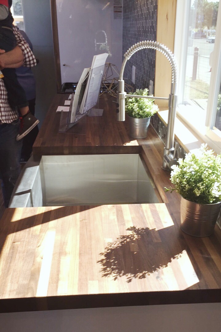 Arnavick really liked the look of this butcher block countertop. We’re considering this look for our little kitchen in the trailer.